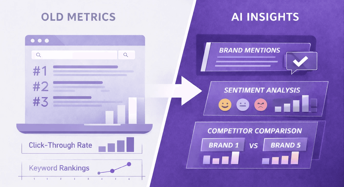 Those numbers can look healthy while a brand quietly disappears from AI conversations. A model might recommend competitors, summarize categories without mentioning you, or frame your product inaccurately. None of that appears in classic SEO reports.